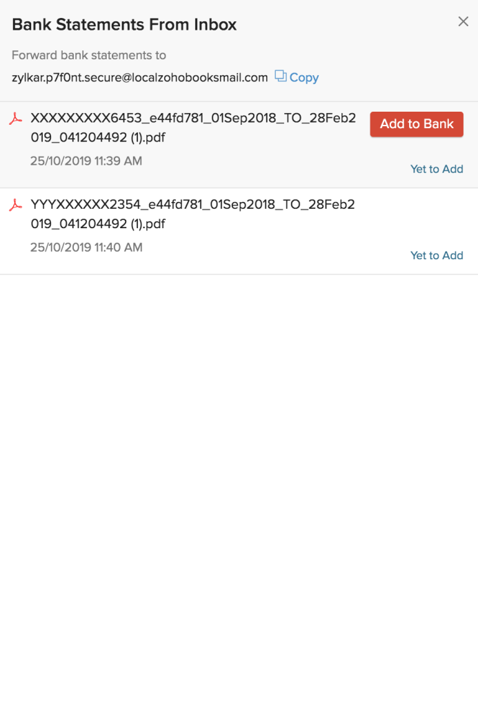 Note: All the PDF files that you upload in Zoho Books will be imported via Perfios.