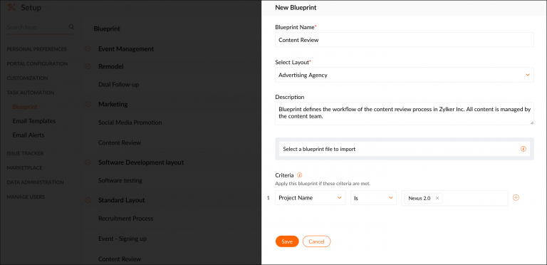 - If you want the blueprint to be executed for a particular task, specify the task name in the criteria.