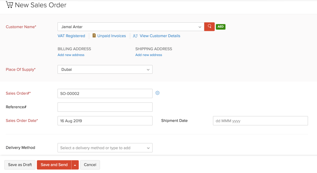 Now, you can create a sales order in Zoho Books. Here’s how: