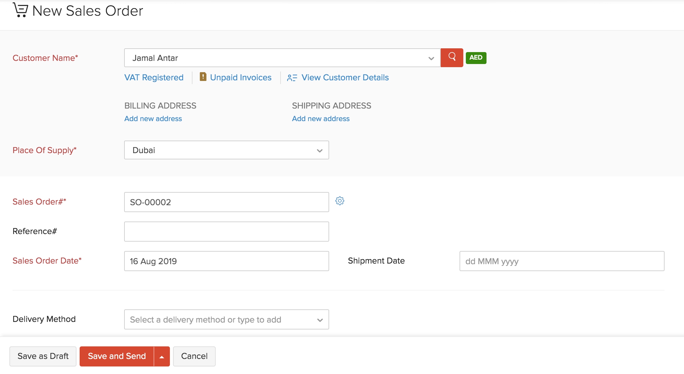 • Click Save as Draft to create a draft or Save and Send to send it to your customer’s email address right away.