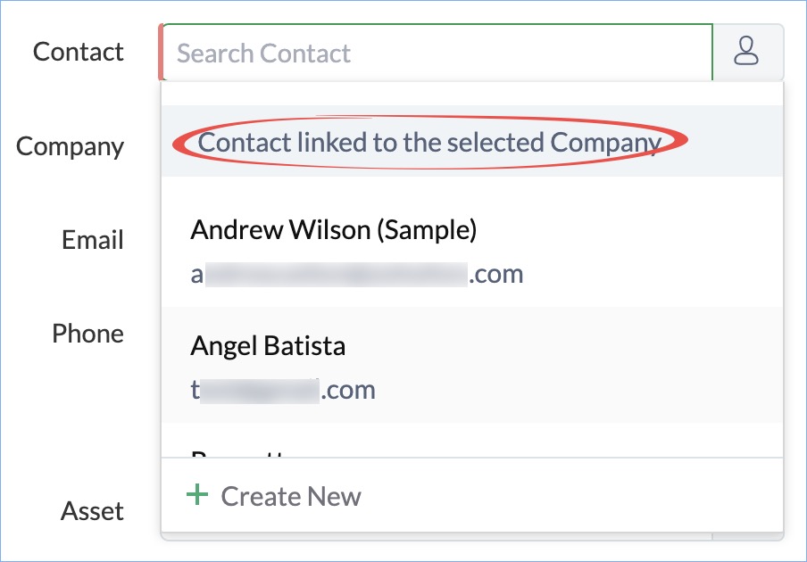 • The Company the contact belongs to. Conversely, for a given company you can choose the contacts associated with it.