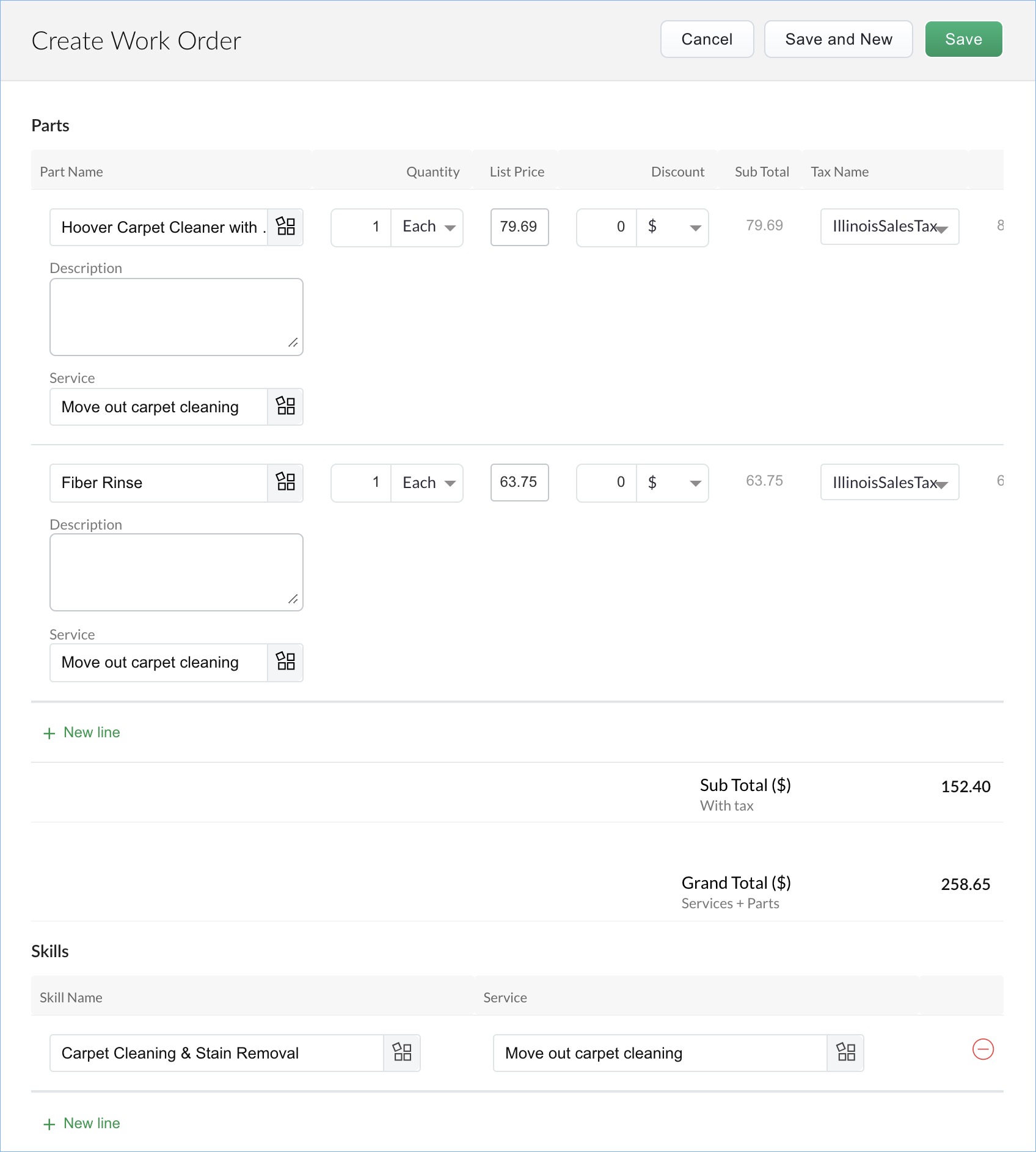 Skills: These denote the professional capabilities needed for the work order.