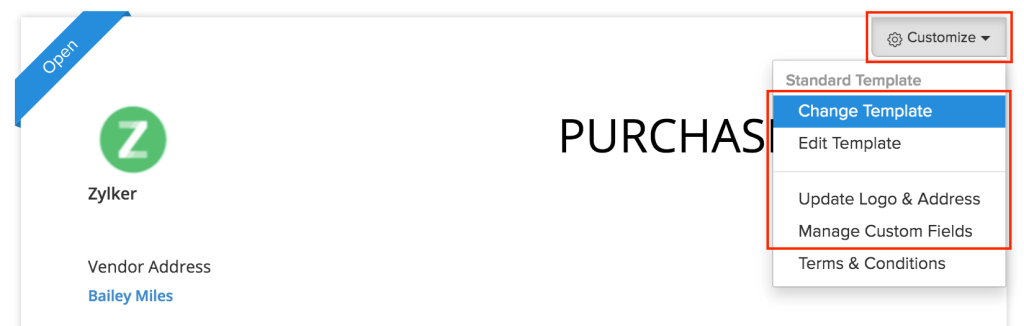How to Customize a Purchase Order in Zoho Books