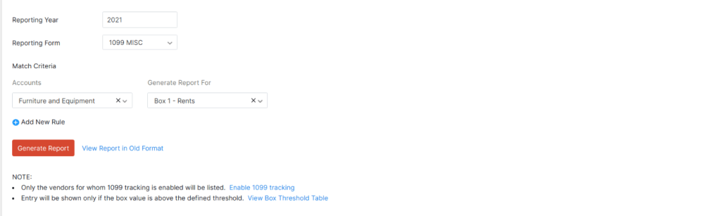 Warning: Once you generate the 1099 report in the new format, you will no longer be able to view or generate the 1099 report in the old format.
