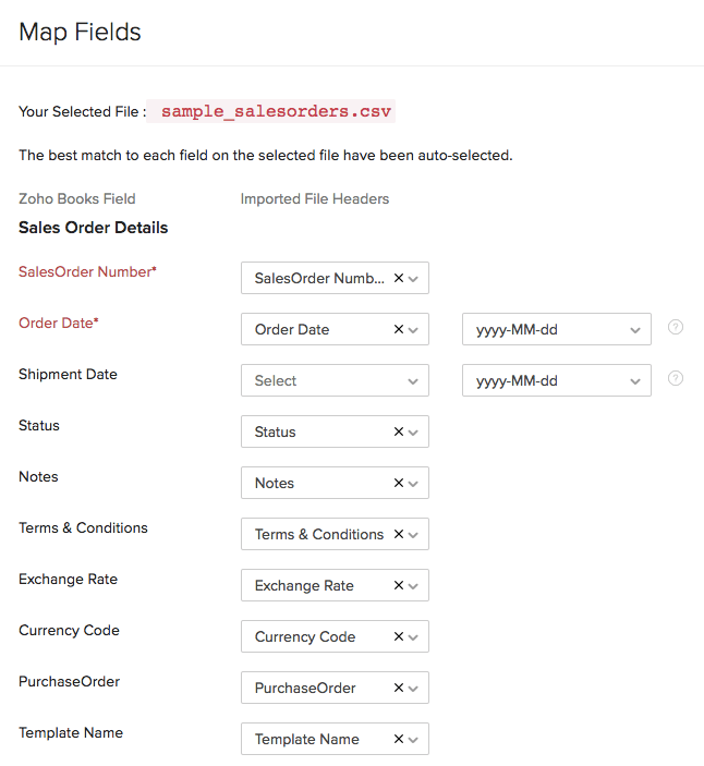 Another way of adding sales orders in Zoho Books is to import them. You can import sales orders you have in your system in the CSV, TSV or XLS format. Here’s how: