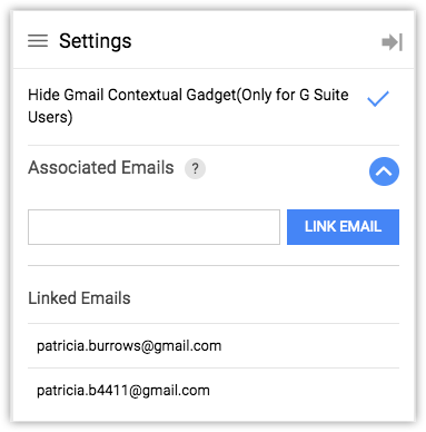 The extension allows you to link your primary Gmail account with multiple Gmail or G-suite accounts. By enabling this you will be able to add data to your Zoho CRM account even from those Gmail accounts for which the chrome extension is not enabled.