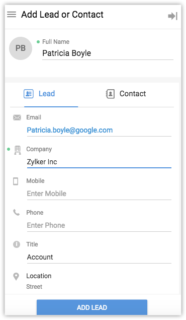2. Fill out the missing details for the lead/contact.