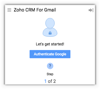 1. In your Gmail tab/window, click Authenticate Google on the Zoho CRM for Gmail panel.