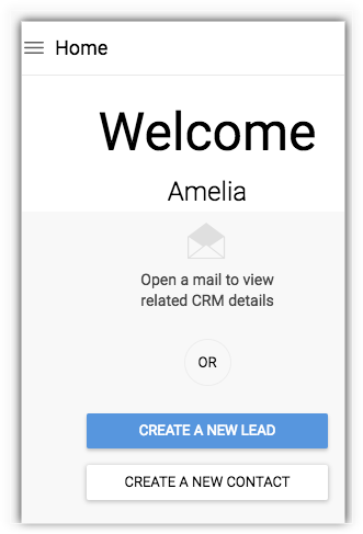 • Home – Home page is where you can add leads or contacts either by entering the data or directly from an email.