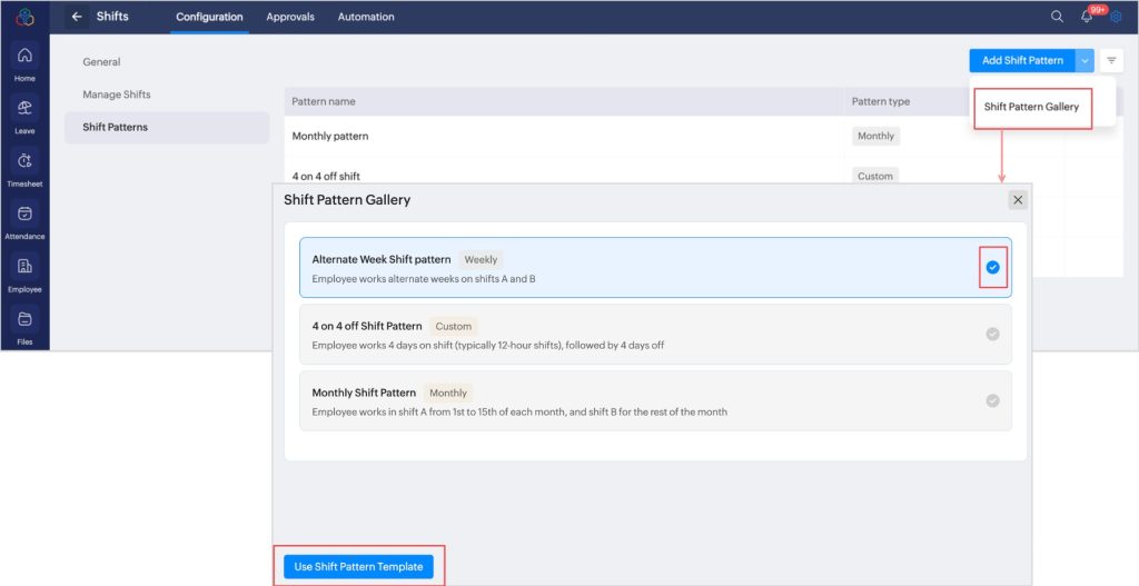 - Select the required pattern from the gallery and click Use Shift Pattern Template.