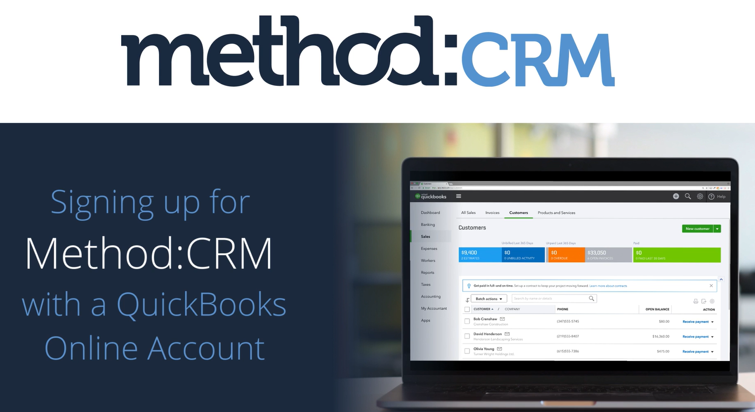 Method CRM Getting Started with QuickBooks Online Learn more about getting started with QuickBooks Online. Method CRM Watch Videos