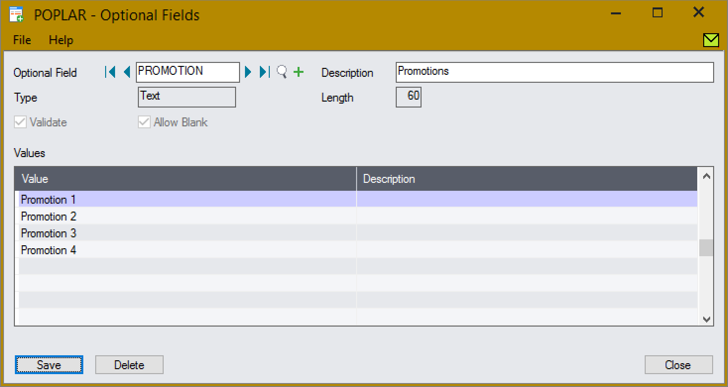All configured Optional Fields are automatically displayed in new, editable, columns of the Miscellaneous Adjustments pop-up screen grid: