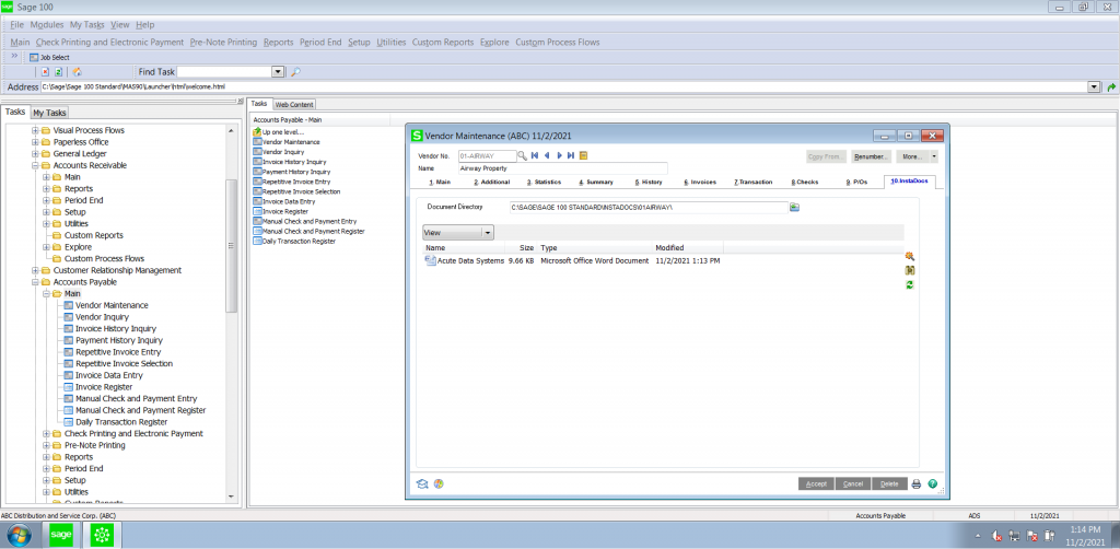 Accounts Payable InstaDocs allows electronic documents to be stored, viewed, and accessed within Sage 100.