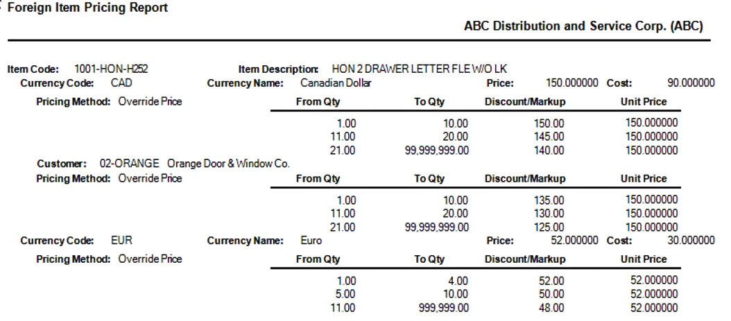 - Foreign Reports: Reports based on foreign item pricing and foreign price cost listing