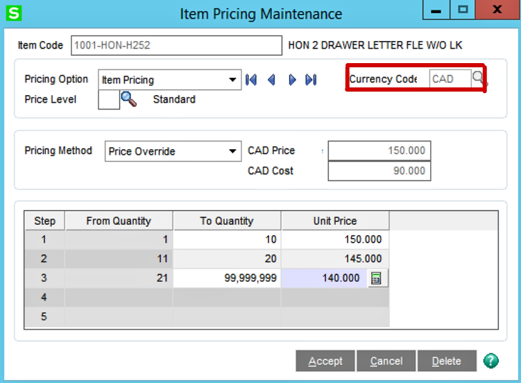 - Setup Inventory Item Pricing Breaks per Currency by Item or Customer