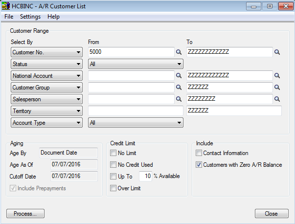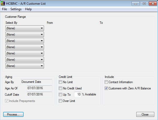 To open the screen open Accounts Receivable > AR Customer > Customer List.
