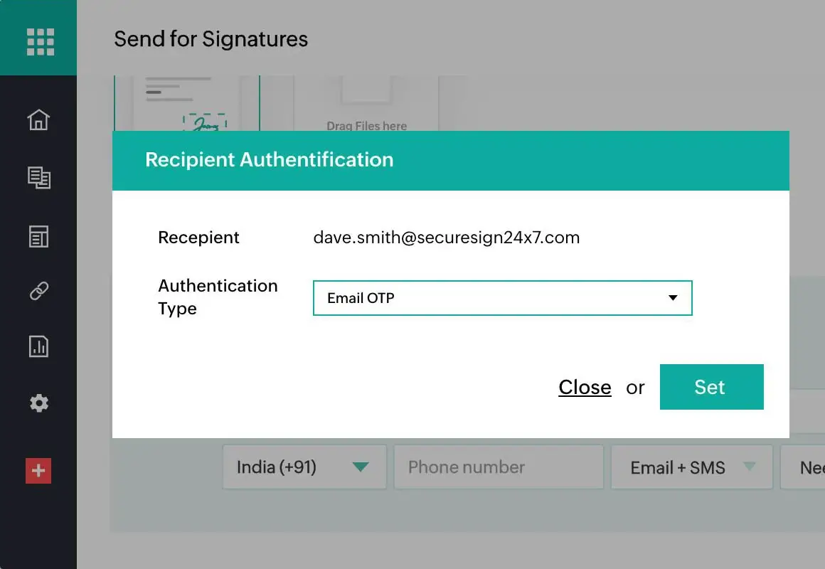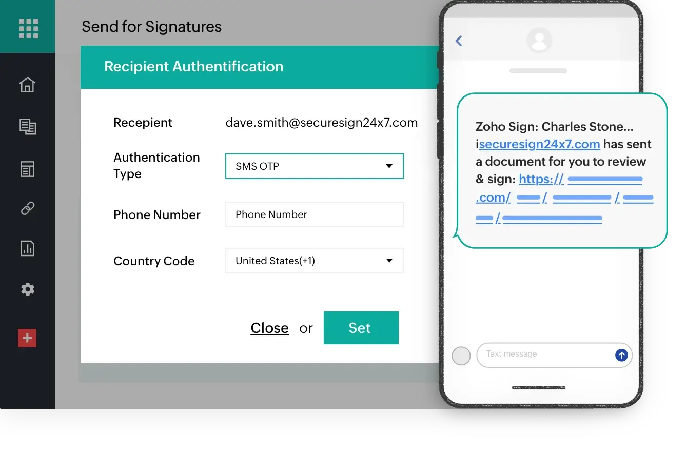 Identity verification for important documents. verifying signer identities will ensure the right people have secure access to the right information. Zoho Sign provides various authentication methods that users can set before sending documents to recipients, depending on the level of confidentiality.