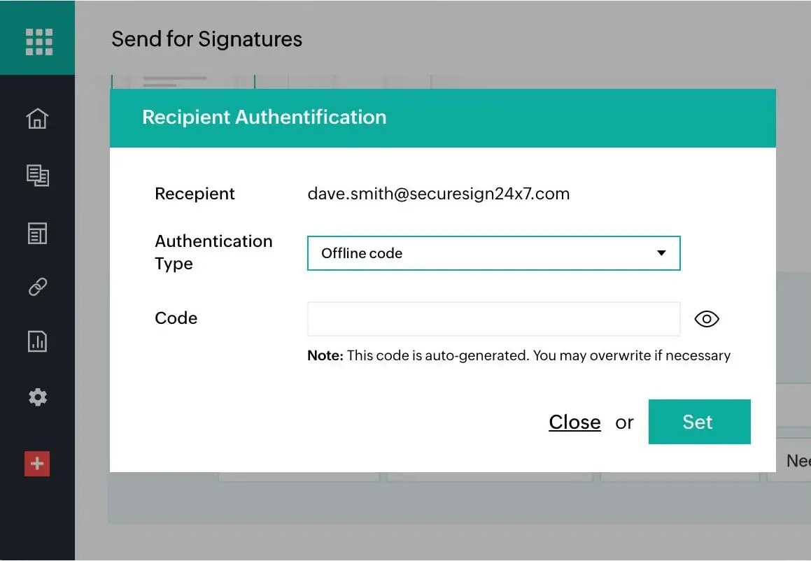 Zoho Sign offers different methods to authenticate signers: