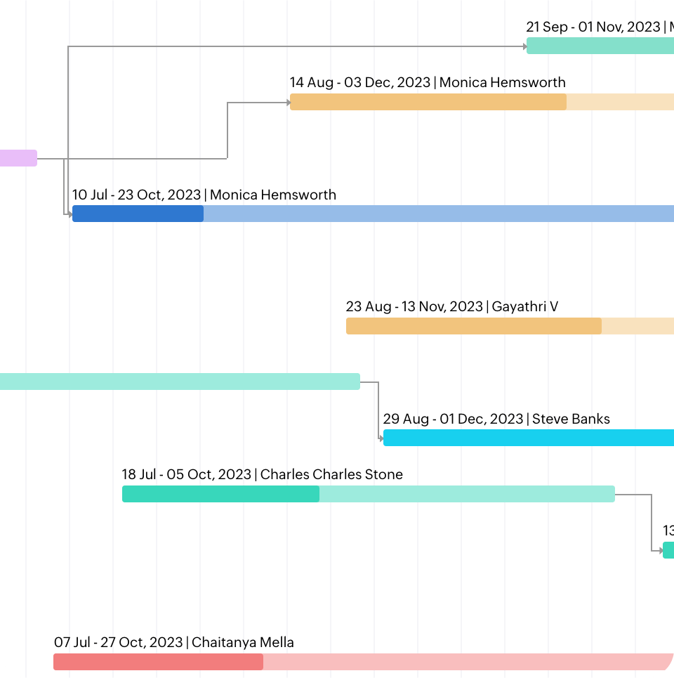 Designing the interface, writing code, and quality testing are all interdependent tasks. A delay in one task triggers a chain reaction. Set up critical paths and baselines in your Gantt chart to monitor dependencies and avoid delays.