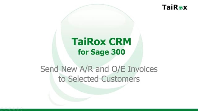 TaiRox CRM and Collections’ Send Invoices program provides a flexible replacement for Sage 300 programs that send A/R Invoices and O/E Invoices to customers.