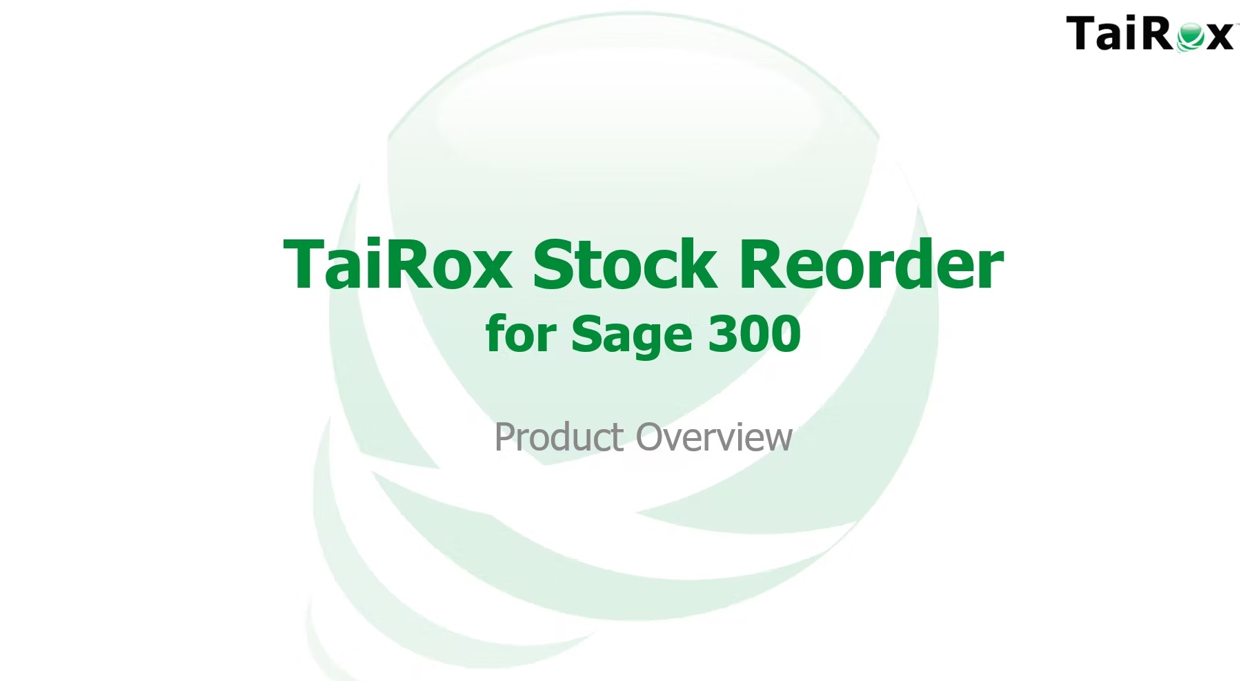Stock Reorder for Sage 300 Tairox Productivity for Sage 300 – Stock Reorder This video entails an overview of Tairox Productivity’s Stock Reorder and it’s Do’s and Do Not’s. Learn more about it’s unique abilities. Tairox Watch Videos