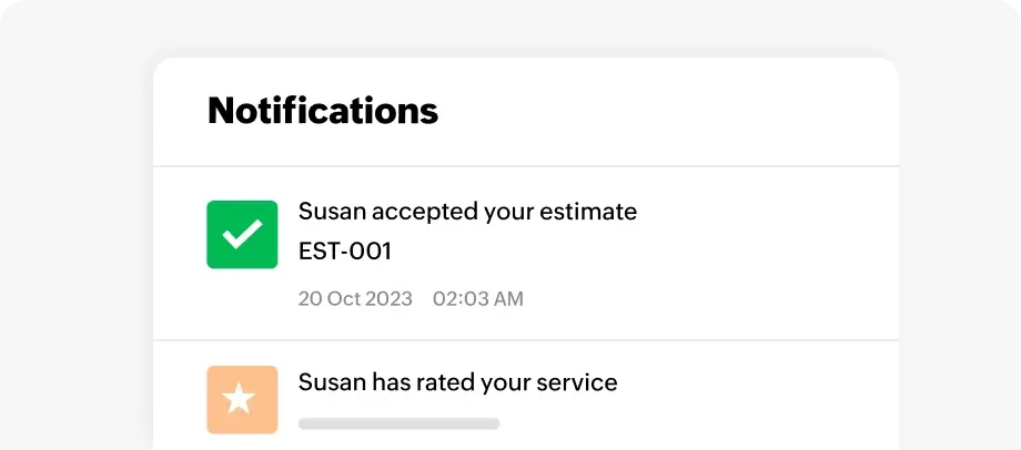 Stay informed with real-time notifications when a client views, accepts, declines, or comments on something, or makes payments.