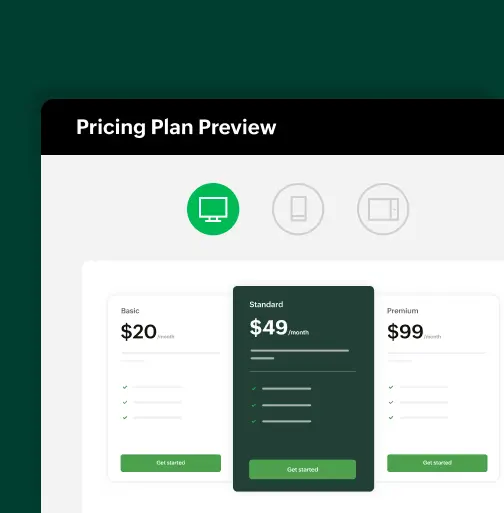 Customize your pricing tables. Choose colors, labels, or select from a gallery of preset tables. Mark specific plans as popular to showcase their features.
