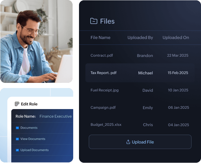 Save time by auto-scanning documents uploaded to Zoho Books! Use the mobile app to scan and upload receipts on the go. Files sync instantly with your Zoho Books account, so everything stays up to date no matter where you are.