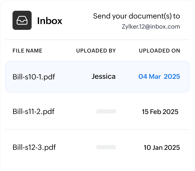 Forward receipts or bills to a unique email address, and Zoho Books will auto-upload, extract key details, and you can easily convert them to a transaction.