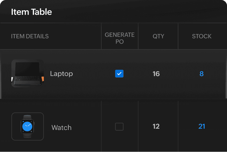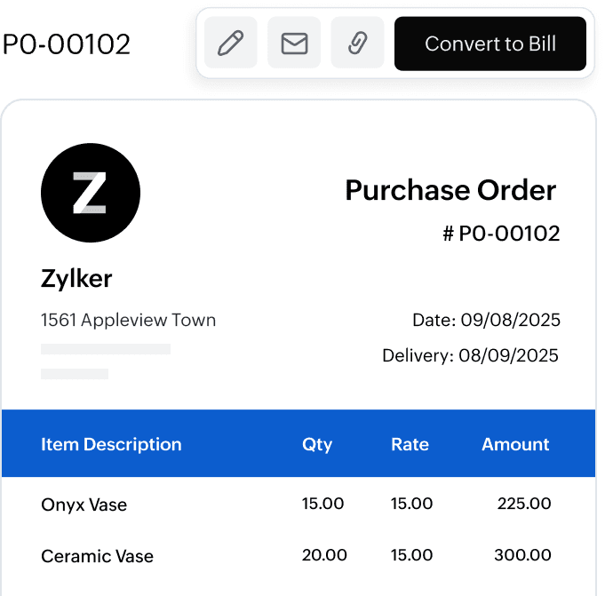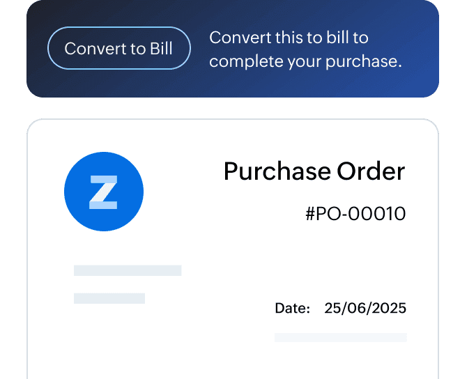 Create purchase orders in minutes, stay on top of your order history and turn them into bills effortlessly using Zoho Books.