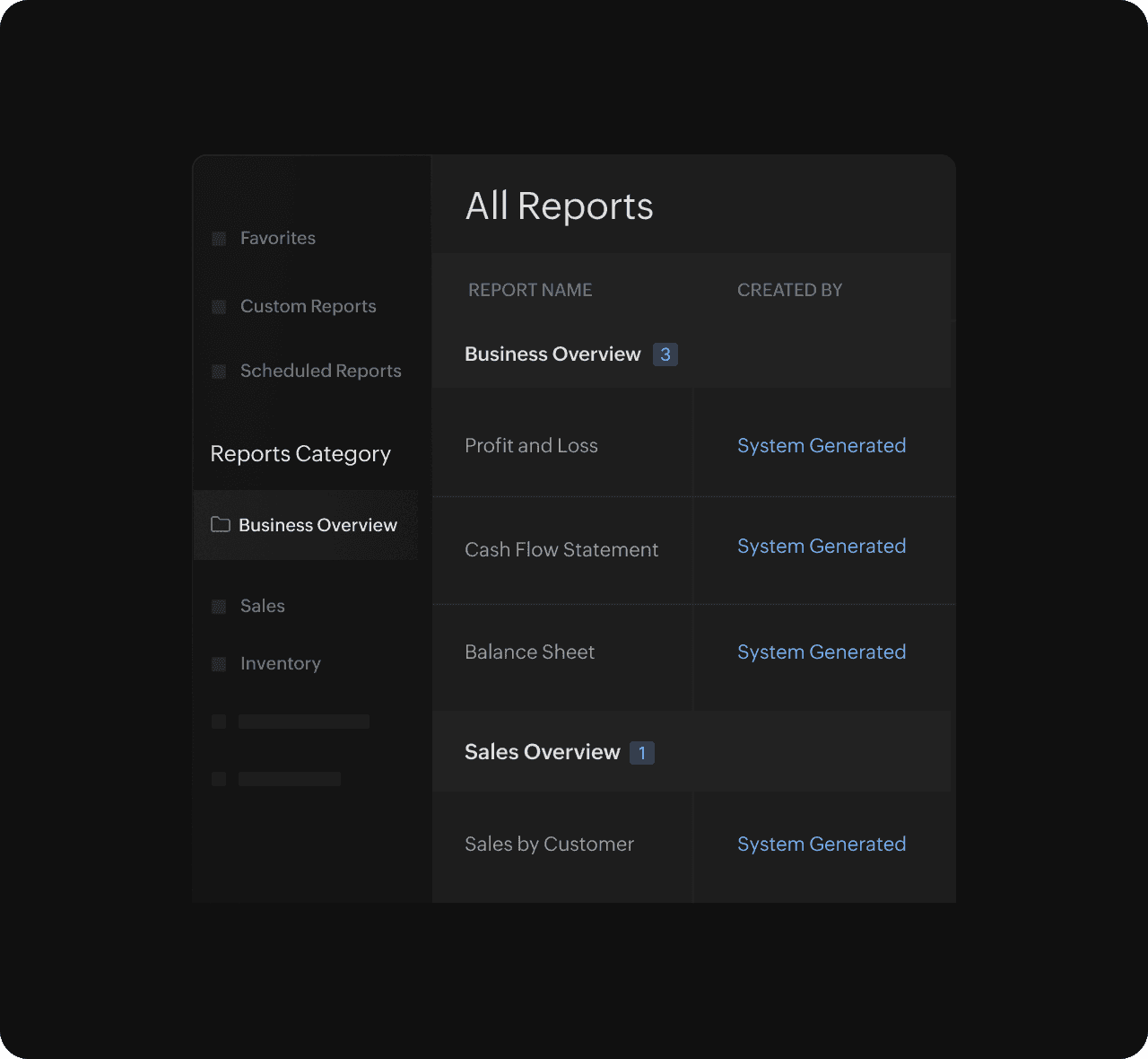Gain real-time insights into your business health. Track receivables, payables, project performance, inventory levels, and tax obligations—all in one place. Zoho Books ensures you stay compliant with financial regulations.