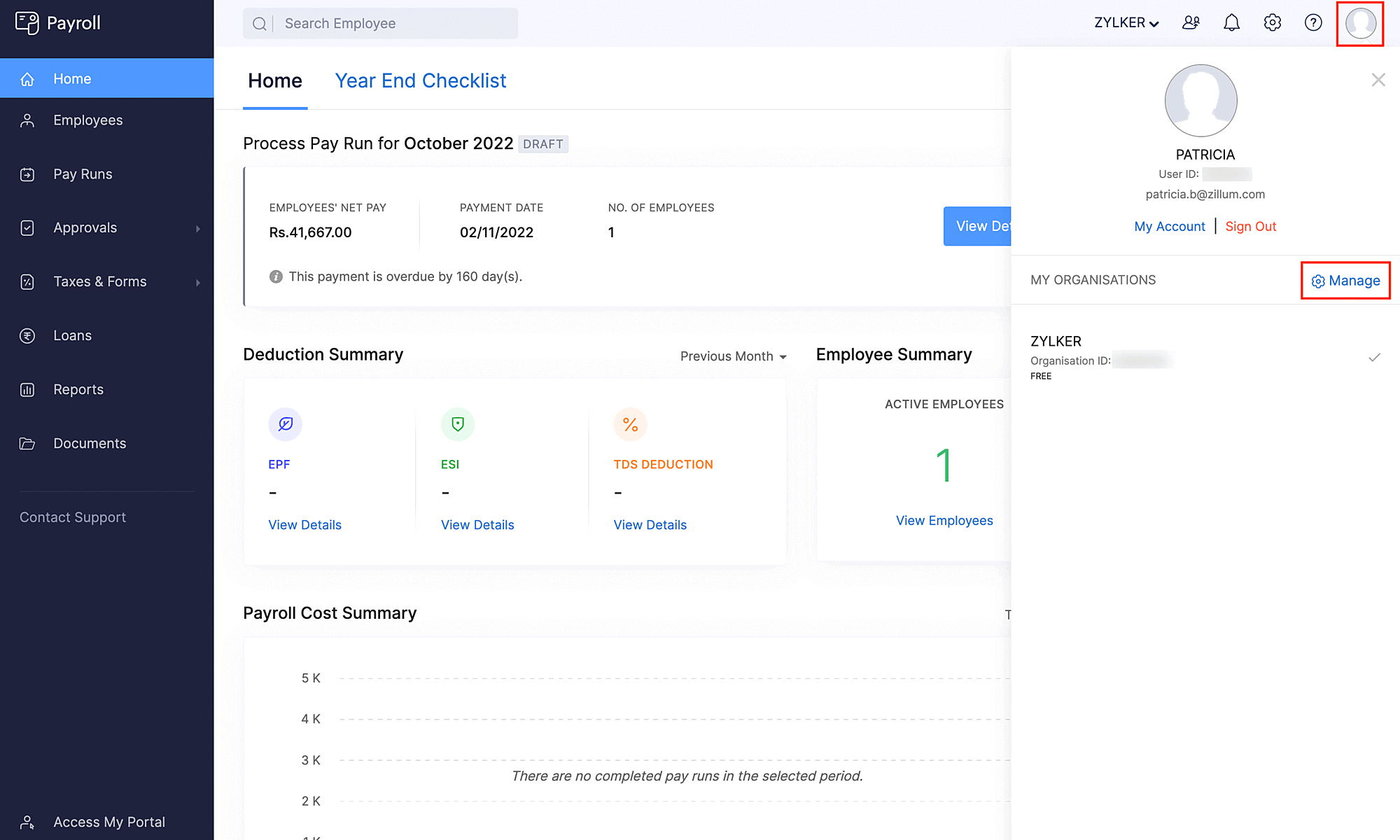 Prerequisite: Only the admins and the users with the required permission can process the pay runs in Zoho Payroll.