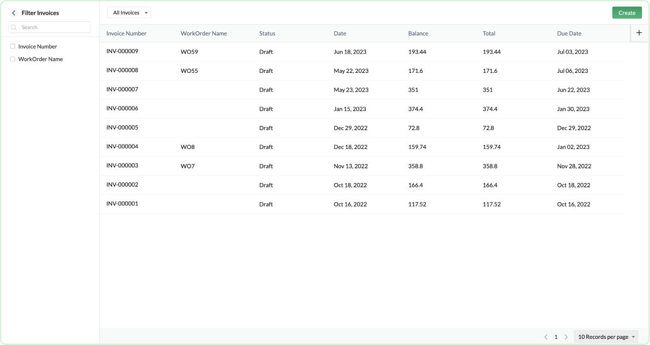 Invoicing and payments in Zoho Field Service Management (FSM) is powered by the Zoho Finance Suite. You can turn work orders into detailed, branded invoices that can be mailed to the customer. You can also select specific services in a work order to invoice. Choose payment terms that suit your organization and collect payments online and offline.