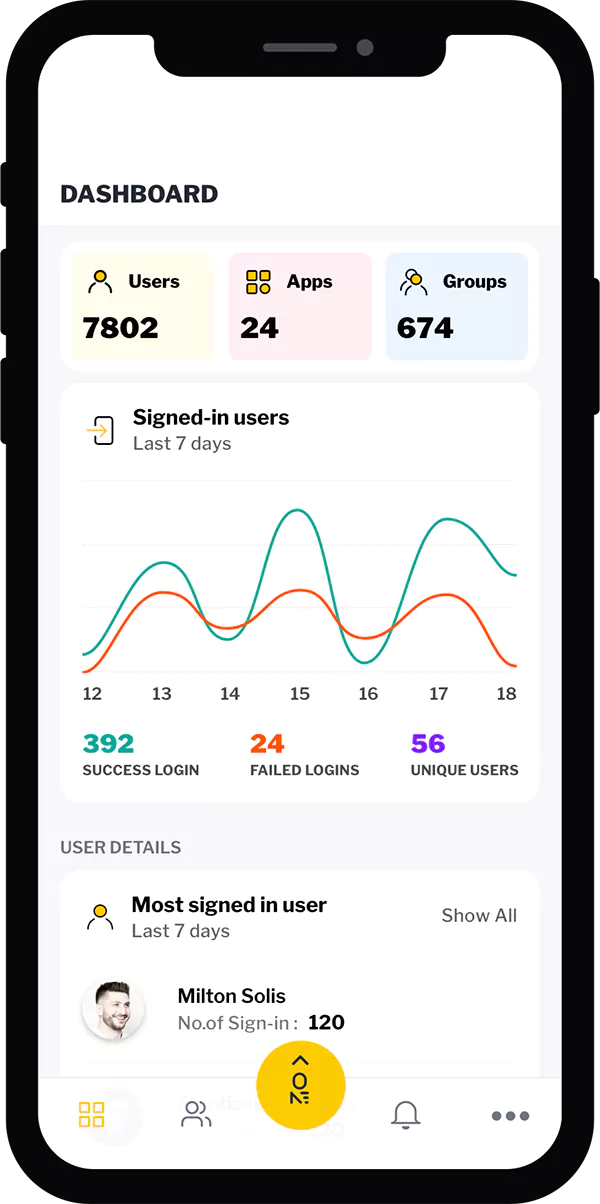 Begin each business day by taking the pulse of your organization. Monitor org-wide metrics—such as log-in trends and total app usage—or drill down into the data to see activity for individual user accounts.