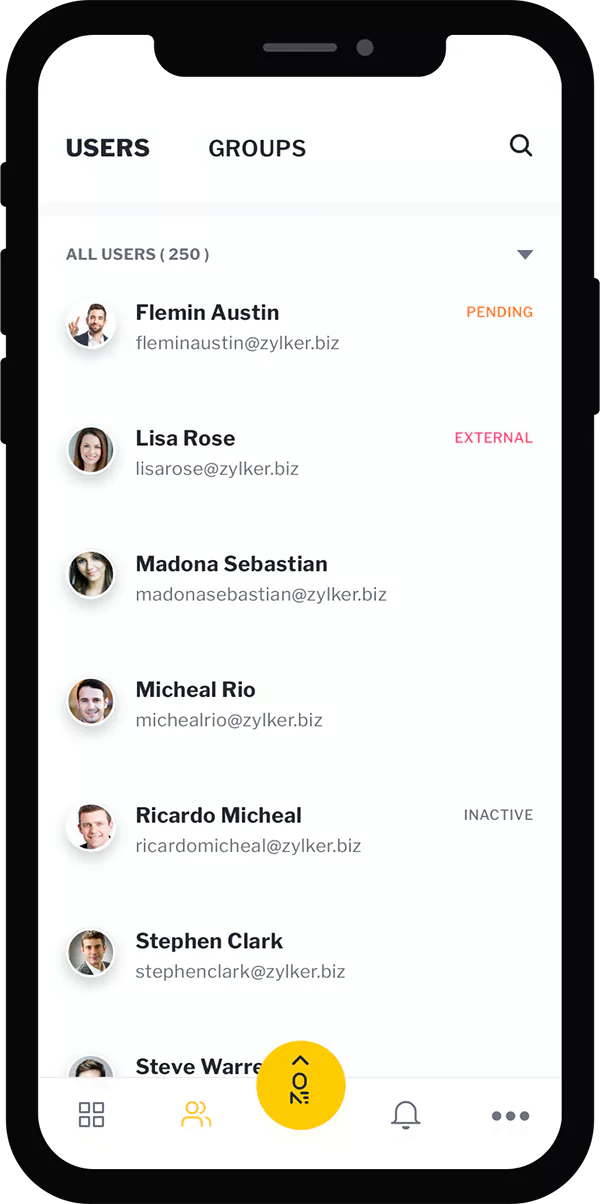 Install, launch, and manage all your Zoho applications with our new mobile app. Toggle between an admin view of your entire organization and an individual view of your personal account. Get admin-level permissions without admin-level complexity.