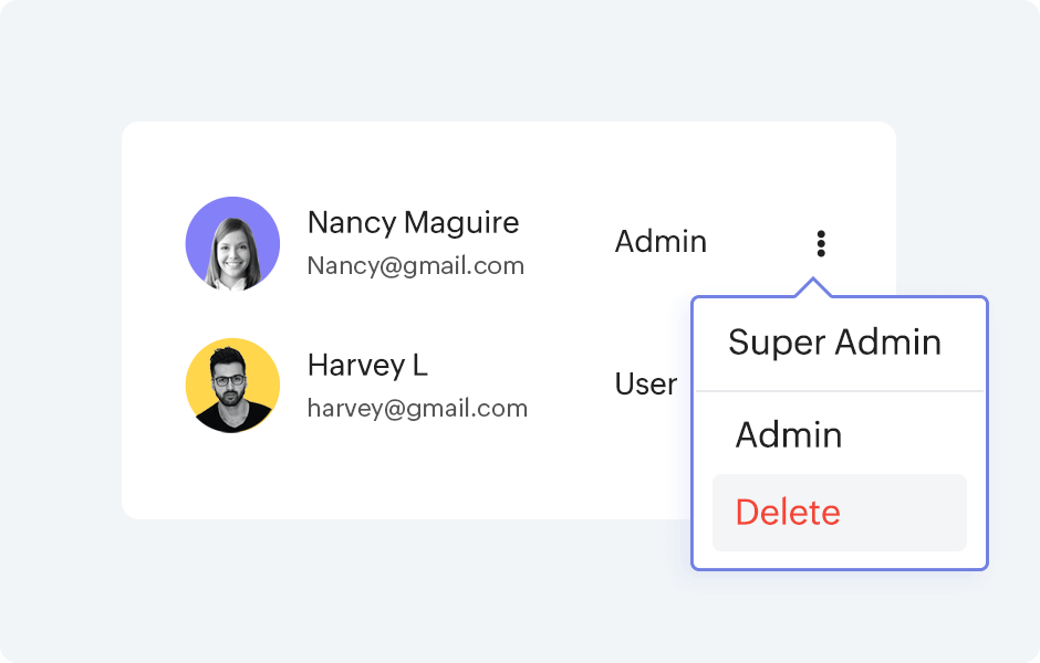 Compliance with data security and privacy protocols is crucial for your business reputation. With Zoho People, you can get field-level access controls, encryption, and other robust security measures. Give access to employee information based on job roles and responsibilities.