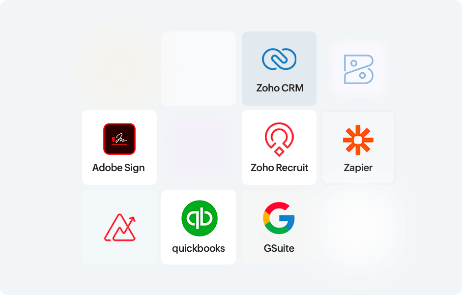 Zoho People enables seamless data sync both within and between multiple integrated systems. All changes are accurately and automatically captured, ensuring you work with the latest information. Learn more about our integrations here.