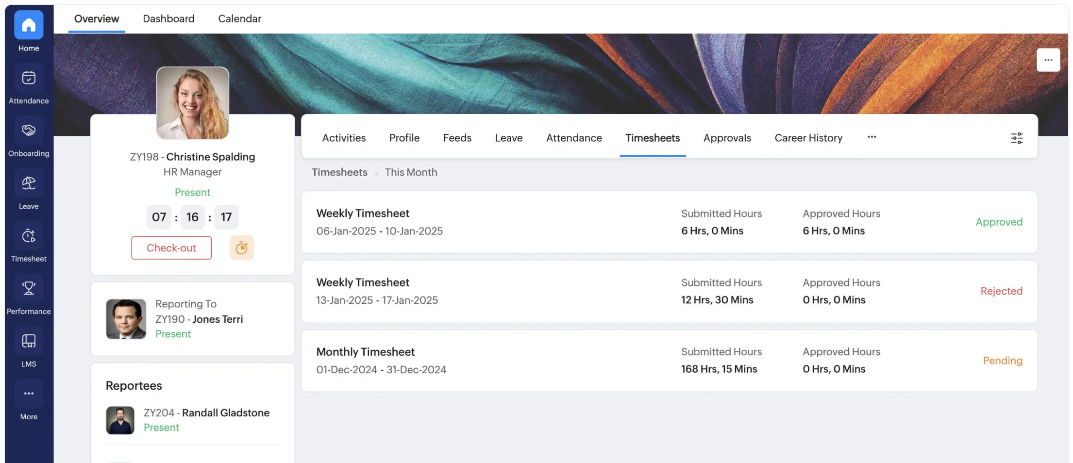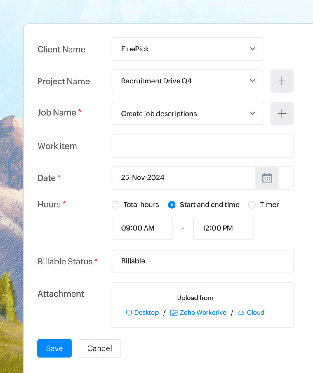 Generate accurate invoices and approve billing statements for your clients on time. You can also factor in taxes and select the preferred currency for your bills. Zoho People’s integrations with Zoho Books, Zoho Invoice, and Quickbooks help you process invoices for validated timesheets error-free and in a fraction of the time.