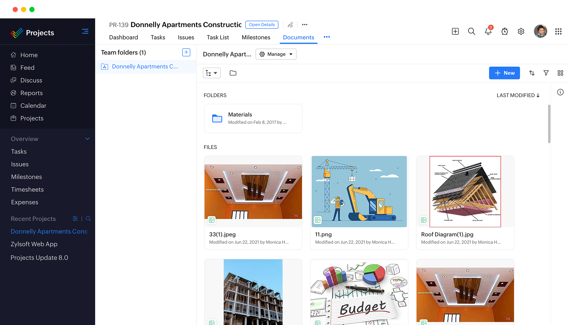 Don’t lose your project documents in emails. Leverage Zoho’s integrated office suite to create online word documents, presentations, and spreadsheets. Associate files with tasks, organize them in hierarchical folders, and access them securely from each project’s document repository.