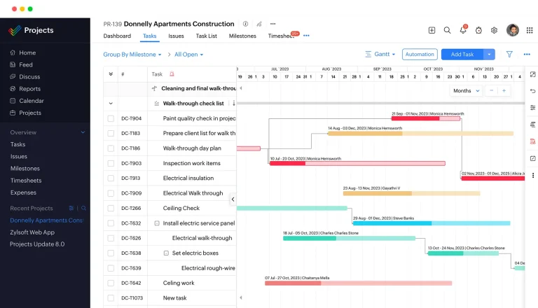 Visualize the project schedule of your milestones, tasklists, tasks, and the dependencies between them on a real-time Gantt chart. To avoid delays, identify your critical tasks by analyzing the critical path of your project. Set multiple baselines to compare project progress and spot slippages.