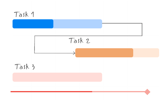 Gantt charts provide an overview of project status. The progress bar indicates how far you’ve come and the road ahead. It helps teams visualize the dependencies between tasks, which allows them to identify risks and accelerate projects. And if things don’t go as planned, Gantt charts highlight critical tasks so teams can focus their efforts.