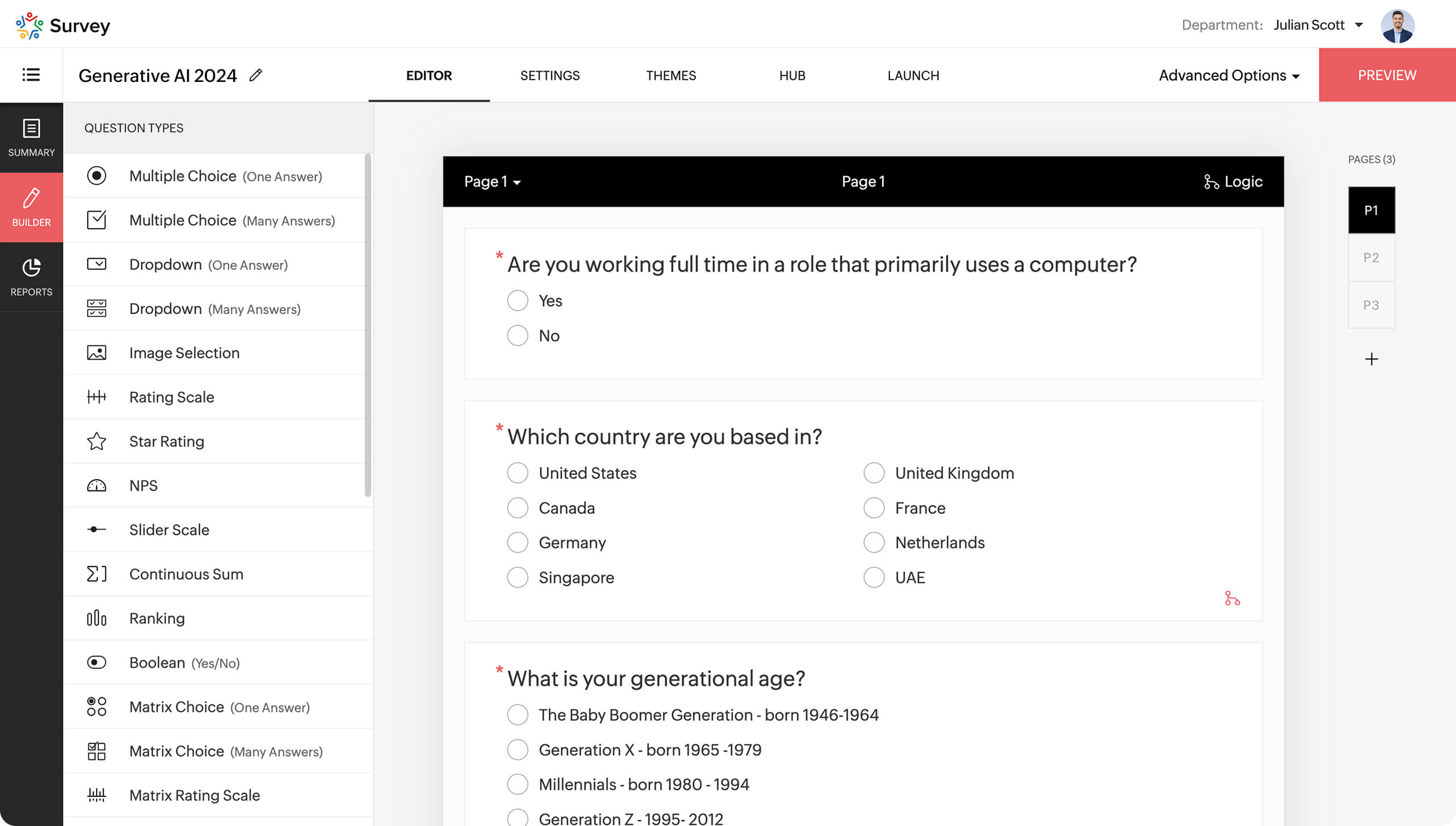 Build surveys from scratch with 30+ question types, customizable templates, and question imports.